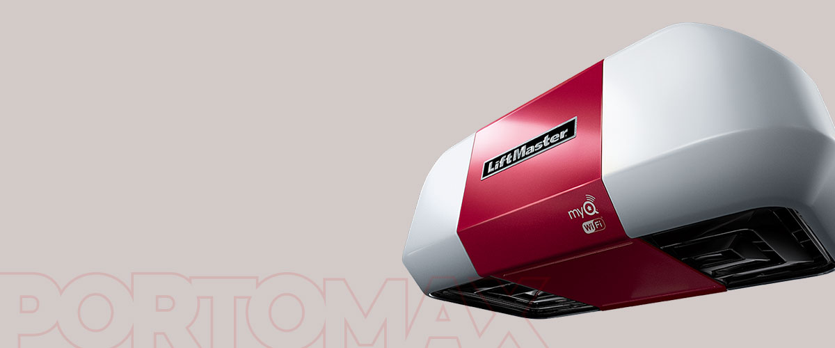 Sistema automático de transmisión por cadena marca LiftMaster, para portónes elevadizos, motor de 3/4 HP de corriente alterna, desbloqueo, riel reforzado, incluye sensores y una botonera de pared iluminada. Habilitado para tecnología MyQ con posibilidad de enlazar mediante conexión de internet inalámbrica.